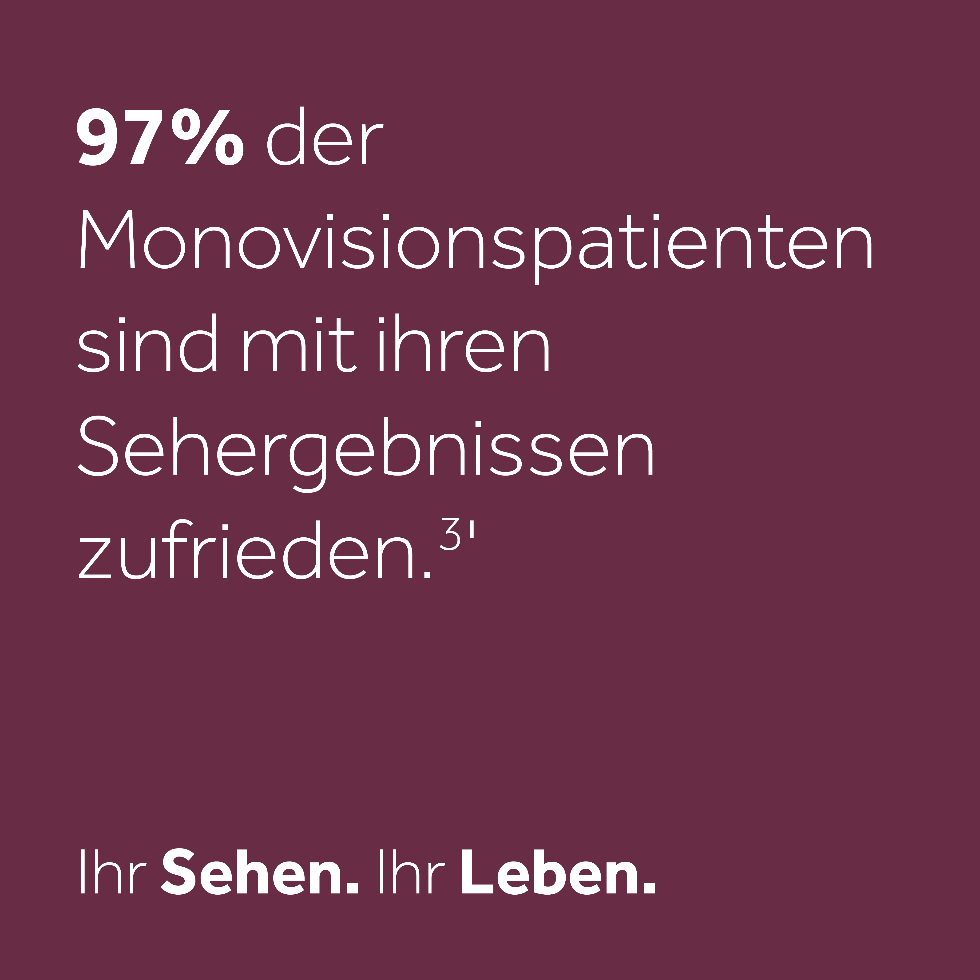 Etwa jeder dritte Patient, dem eine RayOne EMV zur Erzielung einer guten Fernsicht auf beiden Augen implantiert wurde, braucht bei Tätigkeiten im Nahsichtbereich, z. B. beim Telefonieren oder Lesen einer Speisekarte, keine Brille mehr.1