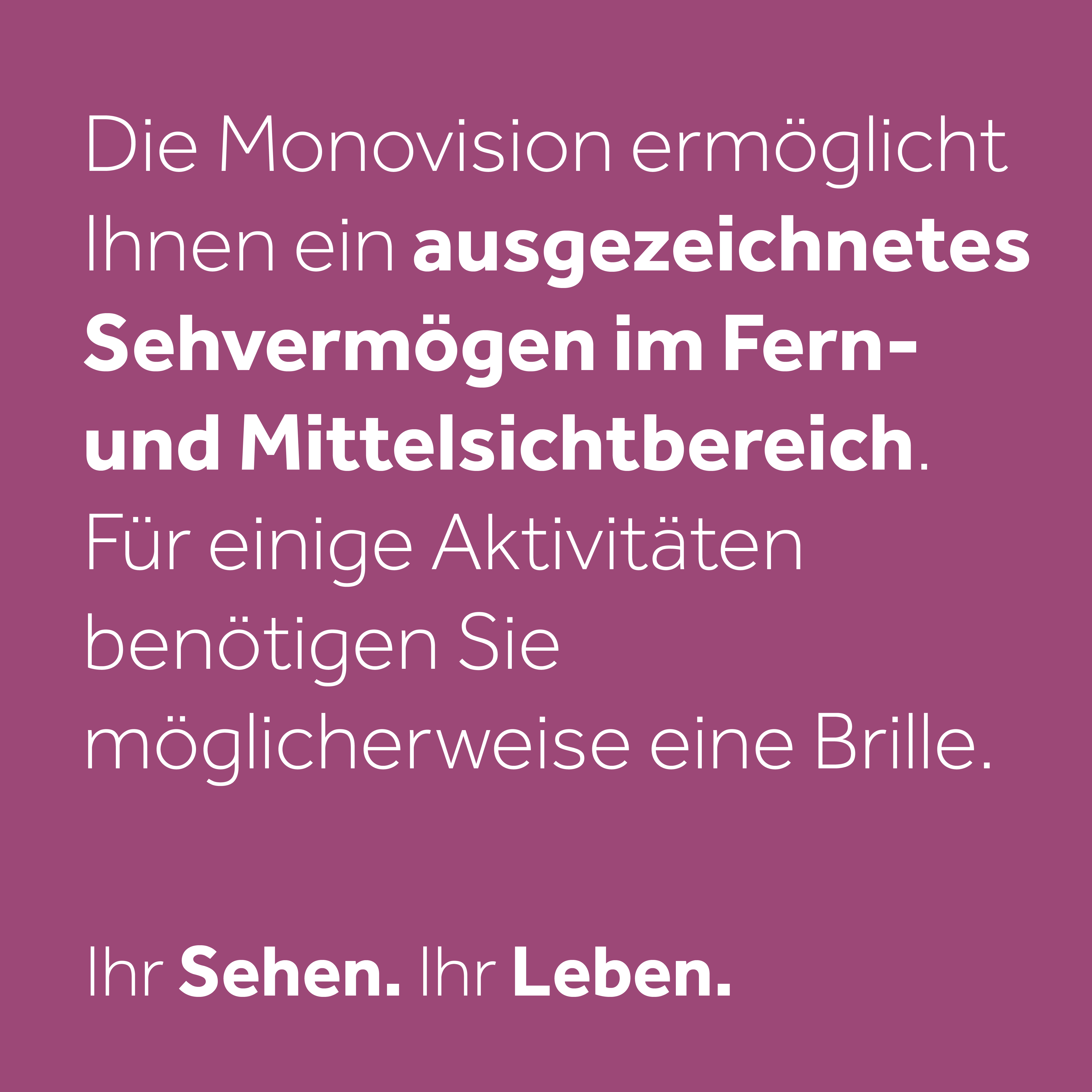 • 97 % der Patienten sind nach einer Monovision mit ihrem